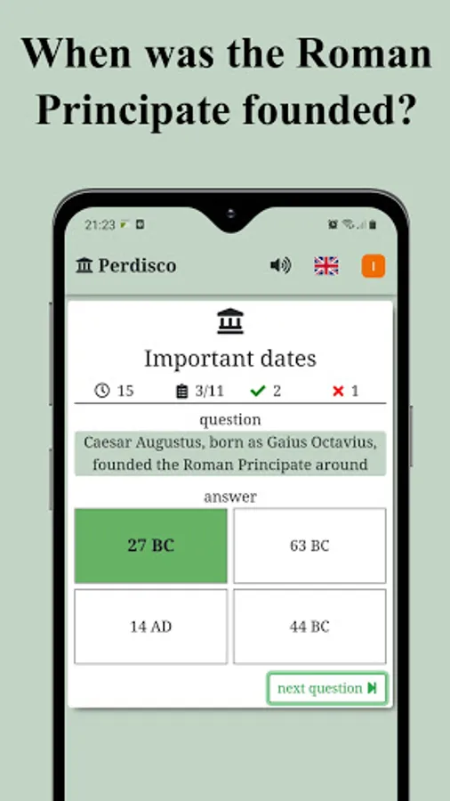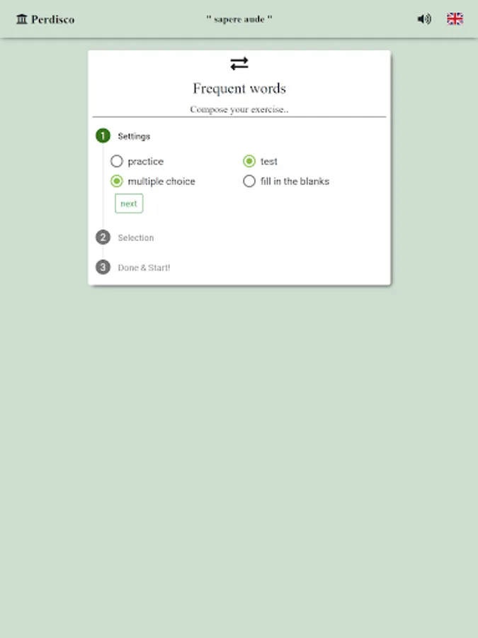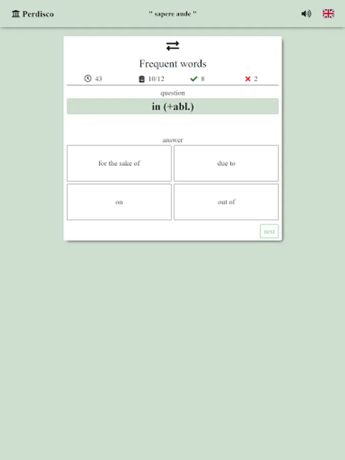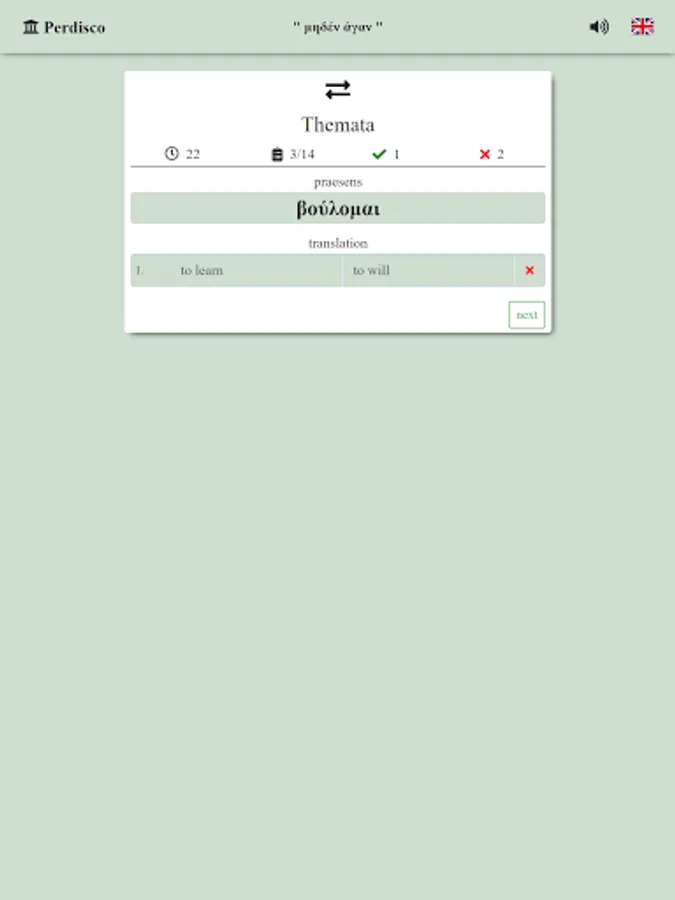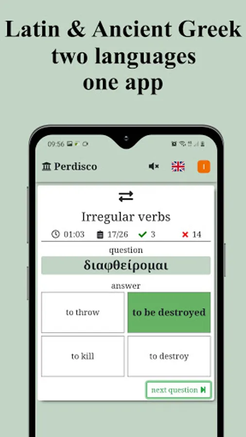 Practice and test yourself in a fun and fast way and become a master in the classical languages, Ancient Latin and Greek. Time to amaze yourself, friends and family with your new skills. Let’s go!