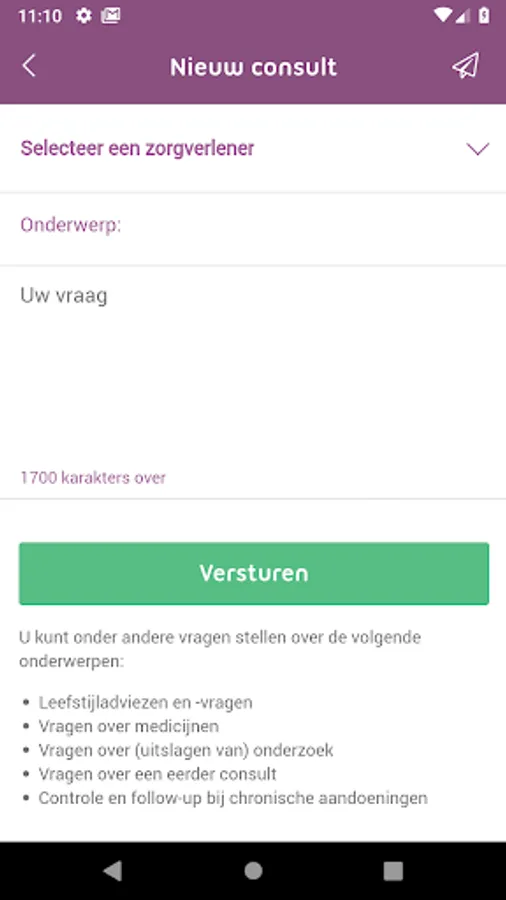 • Ask your doctor your medical questions directly via an eConsult and receive a message as soon as your consultation has been answered. Pay attention! eConsult is not intended for urgent matters or life-threatening situations. If you are not sure about the seriousness of your complaint, always contact your GP by telephone.