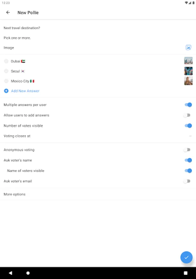 - Ask the voters' name or email. Or keep it anonymous.