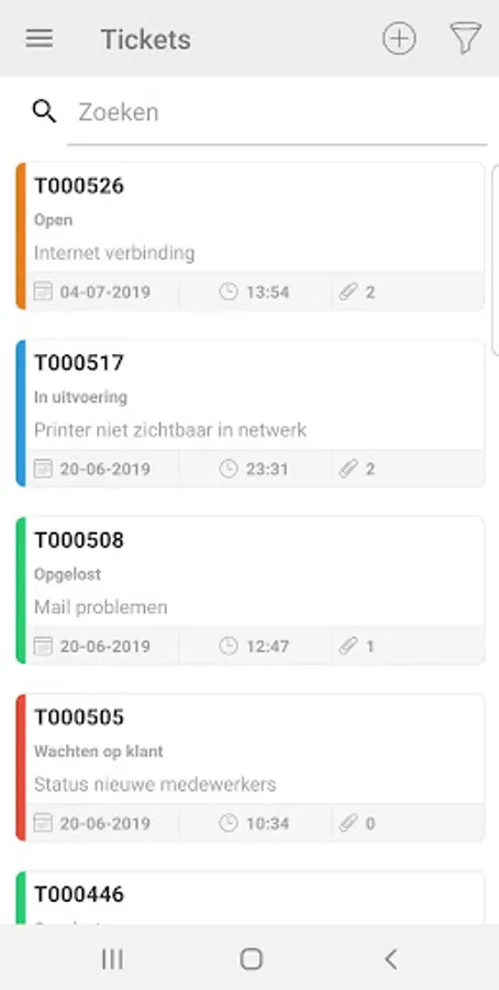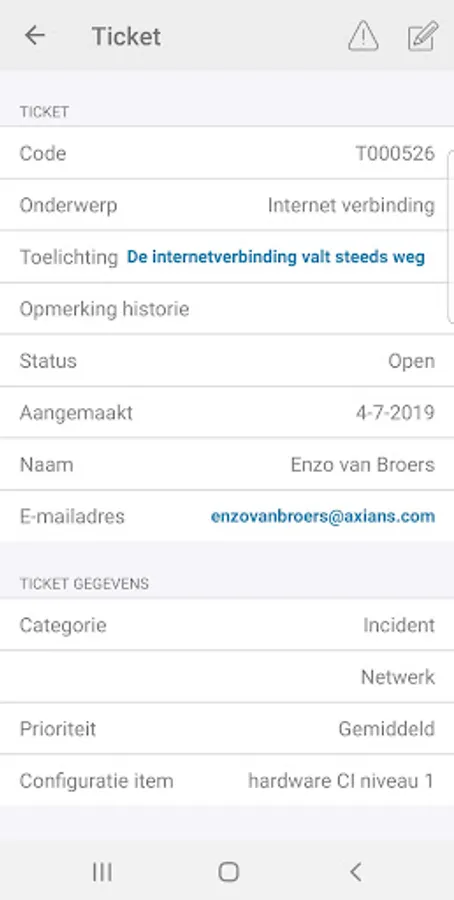 In the tickets overview your customers can immediately see the status of the ticket. Customers are able to filter for example on the status of the ticket. A handy functionality to quickly view questions between your service desk and your customer. When your service desk asks customers questions, customers want a quick answer. After all, they want the ticket to be resolved as quickly as possible. Your customers can act on status in the app, for example "waiting for customer". Based on this they can quickly see if they still have to answer questions. After saving the answer, this ticket will get a different status so that your service desk employee sees that the ticket has been enriched with information. In this way, your customers and your service desk work together more efficiently to resolve the ticket. It is also possible to call directly from the ticket to the service desk or send an email.