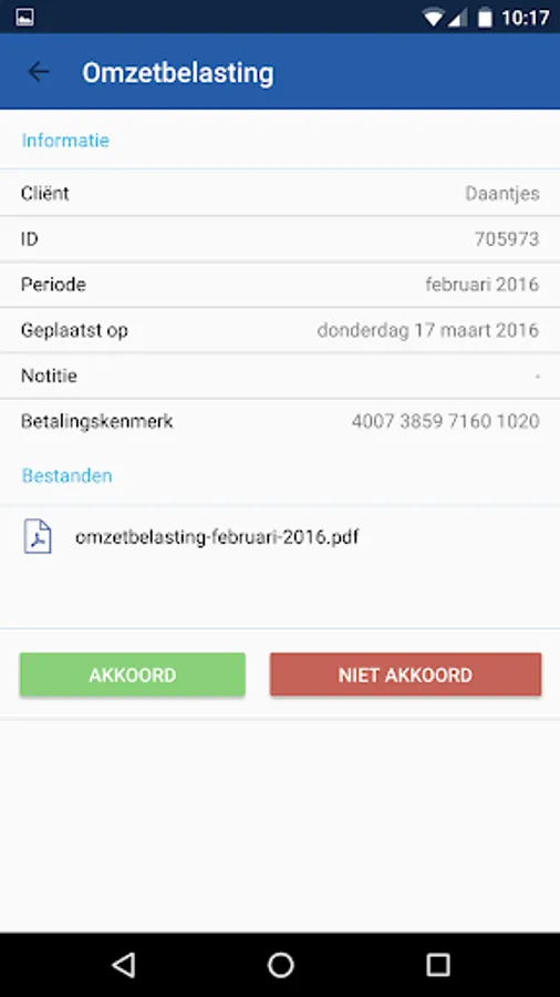 To use this app, you need the credentials of the customer portal of your accounting or administration offices. Ask your relationship manager if they offer this. After entering your credentials and possibly an SMS code, choose a personal PIN code to log into the sequel to the app. Thus the data in the app always be kept safe and are still easily accessible. If you are logged in and you have access to multiple entities (eg companies), please directly with all the functionality for these entities.