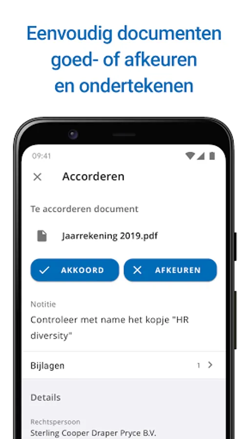 Approve documents like tax returns and financial statements in seconds. These can then be sent directly to, for example, the Tax and Customs Administration or Chamber of Commerce. You will receive a push notification when you can approve a document.