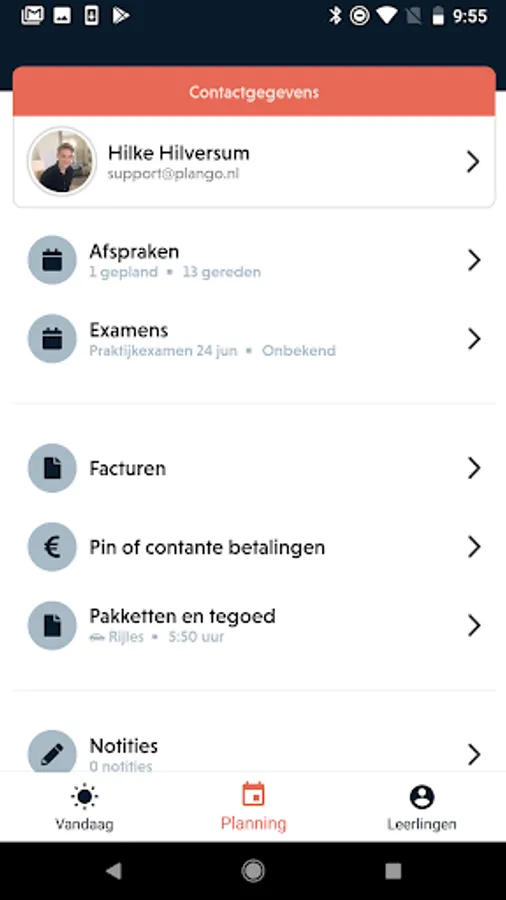The plango instructeursapp you have in the lesauto everything at hand: your digital calendar, lesson card and the action card.