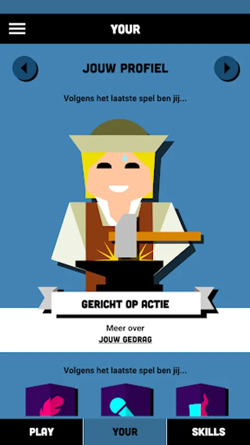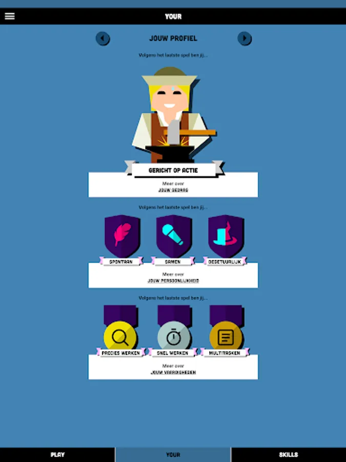 By playing the games in this app you earn 'Skills Points'. These points provide insight into your competences, talents and behavior. This way you build on your personal profile. Super fun and super useful!