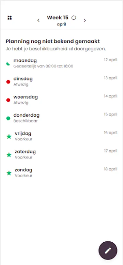 - Fill in availability and view work schedule (and see who you’re working with)