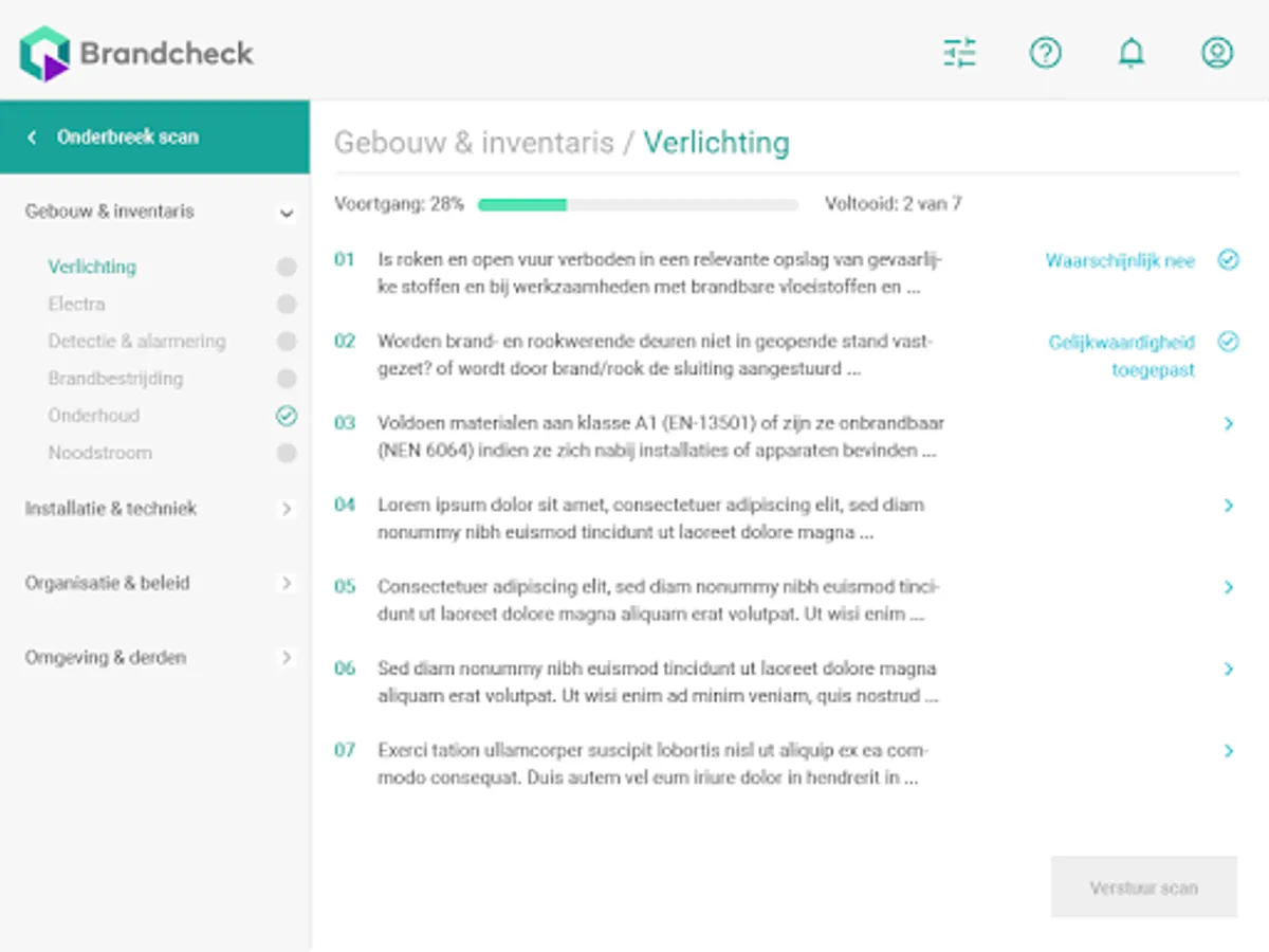 In this app you go more inventory the detail and depth of the current situation. There are two types of questionnaires for Expert app generated. One at the building level and a building section level. These can be filled for example by the facility manager.