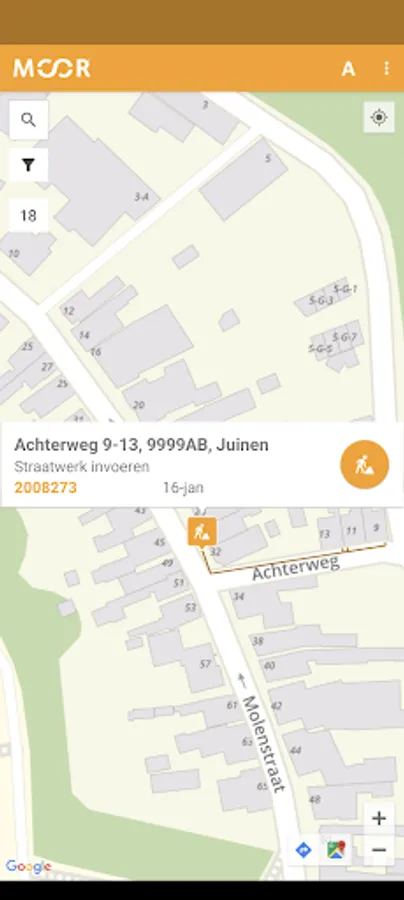 The renewed MOOR app is intended for employees of Dutch municipalities. This app allows you spot information about roadwork and work in the public area of the municipality for which you work, you can see on the map. Via GPS determines your position on the map and you see all the work in your immediate vicinity.
