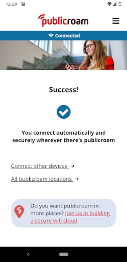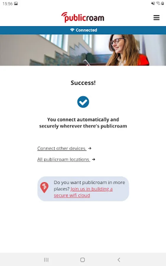 Sign up for publicroam in no time. Publicroam gives you automatically and securely access to guest WiFi at all affiliated organizations: municipalities, libraries, healthcare institutions, museums, theatres, sports locations and shared workspaces.