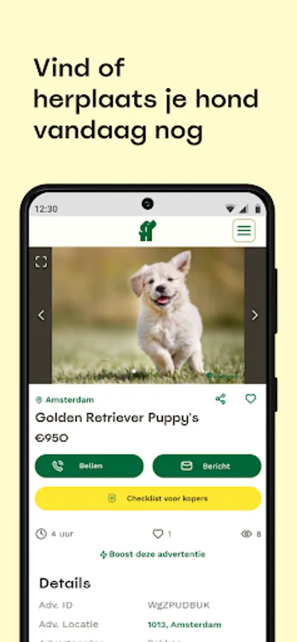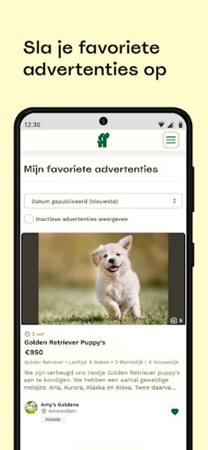 Do you want to buy a dog or puppy? Are you a breeder who wants to sell his puppies? Or do you unfortunately have to rehome your dog? Welcome to the official Android app for PuppyPplaats, the safest dog marketplace in the Netherlands to buy and sell puppies and dogs.