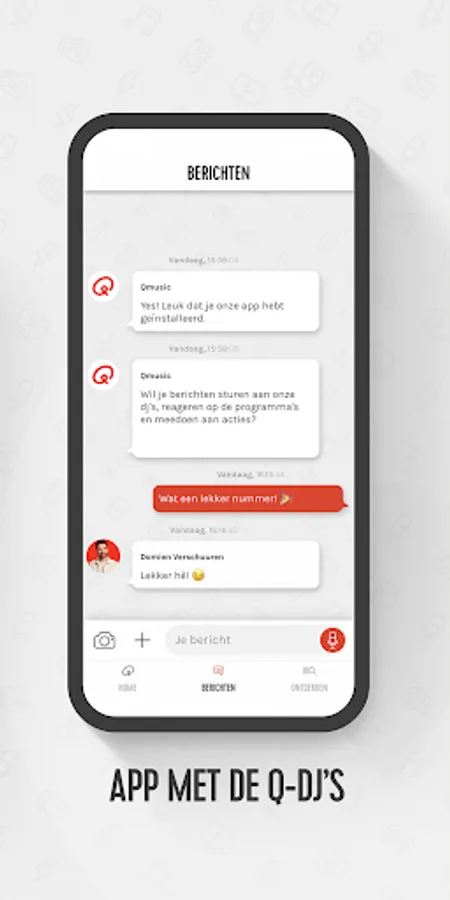 Laat weten wat je van bepaalde onderwerpen vindt. Misschien krijg je wel een bericht terug van je favoriete radio-dj. Mattie, Marieke, Domien, Igmar en alle andere Q radio-dj’s checken tijdens de uitzending regelmatig de app!