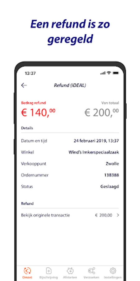 You can also arrange Refunds quickly and easily; you search for the transaction in the App and arrange the refund with one click.