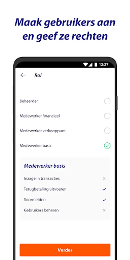 If you use the Rabo Smart Pay App, you can easily authorize employees via the App to state a cash deposit, send payment requests and arrange refunds. Employees then do not need their own pass. That's easy and you don't have to pay for extra passes.