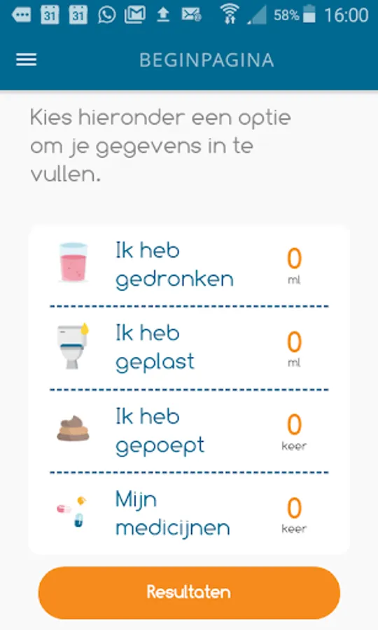 Helder is an application specially designed by the centers for pediatric urology and Pediatric Nephrology at the Radboudumc Amalia children's hospital to help you and the doctor. In this application you can keep track of exactly what you drink, pee, poop and what kind of medication you use. And that information is useful to know for you and the doctor. Very clear!