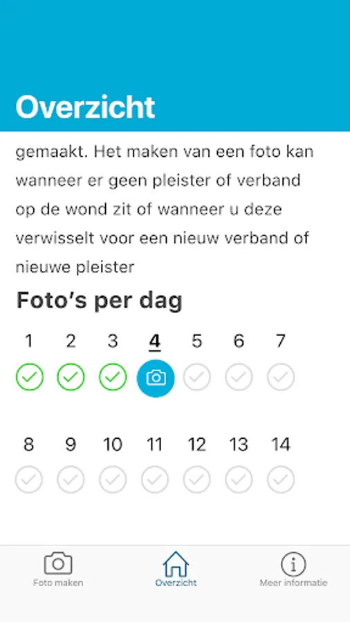 We offer an easy way to perform a daily measurement. The measurement consists of answering a number of questions and taking a picture of the wound.