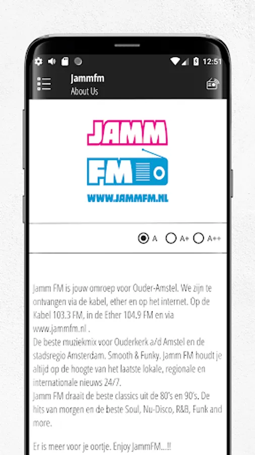 Jamm FM draait de beste uit de classics 80's en 90's. De hits van tomorrow, en de best soul, gospel, nu-jazz and r & b.