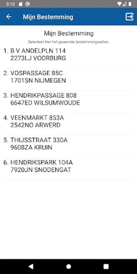 Note: via. it is not possible to enter new addresses in the app, only existing addresses can be selected.