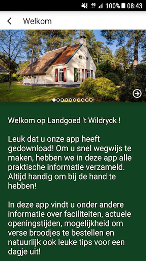 Ordering sandwiches during your holiday? View opening hours of the catering industry? Everything you want to arrange during your holiday at Landgoed 't Wildryck can be found in our app. Download the app before your holiday and you can be sure that you always have the most up-to-date information with you.