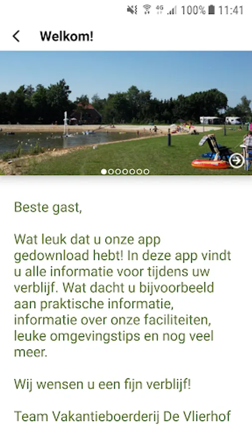 In the Vlierhof Holiday app you will find all kinds of useful information about our campsite, such as arrival/departure times, location of the environmental street, products at the self-service. You can also find walking and cycling routes, markets and other places of interest in this app.
