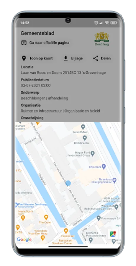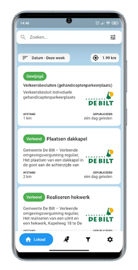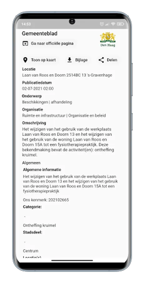 Do you want to know what your municipality thinks about your residential area? Set the app by location and area. All legislative changes, permits, etc. within this area appear in your overview.