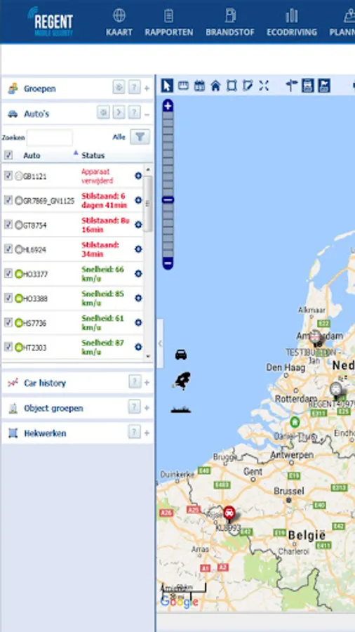 This track & trace App is available next to the Autobedrijf Cor van Bree online platform and is free for any user who has installed a Regent Mobile 'tracking system in his / her object connected to the "Mobile Connect" platform.