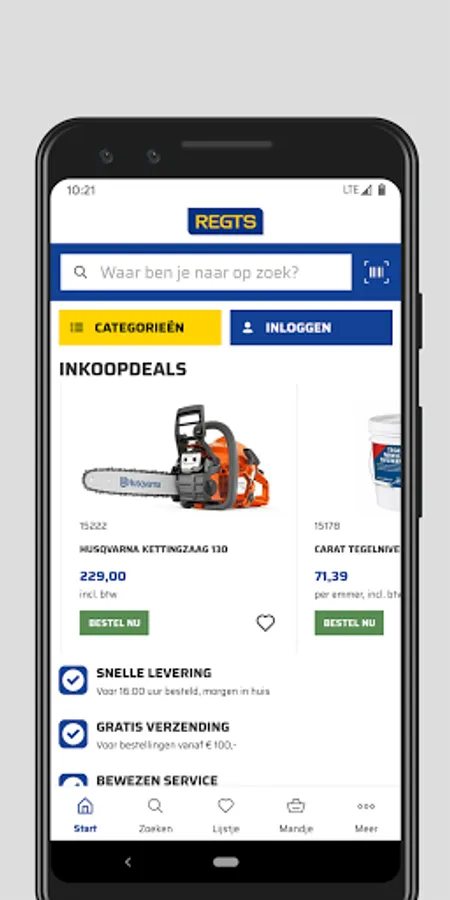 We make it as easy as possible for you to order materials and tools from us. That's why we now have something new for you: our Regts scanner app! With this scanner you can easily scan the barcodes of our products and order the products. This way you can place your order quickly and you will never run out of stock.