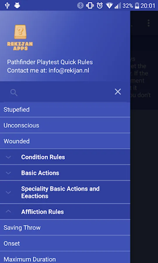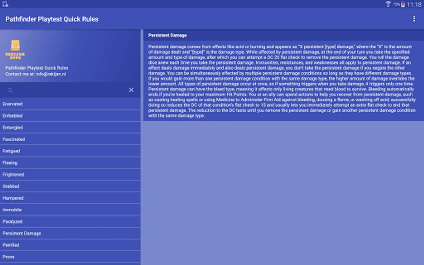 This app is made to be able to quickly reference rules that come up during combat so you can speed up your encounters.