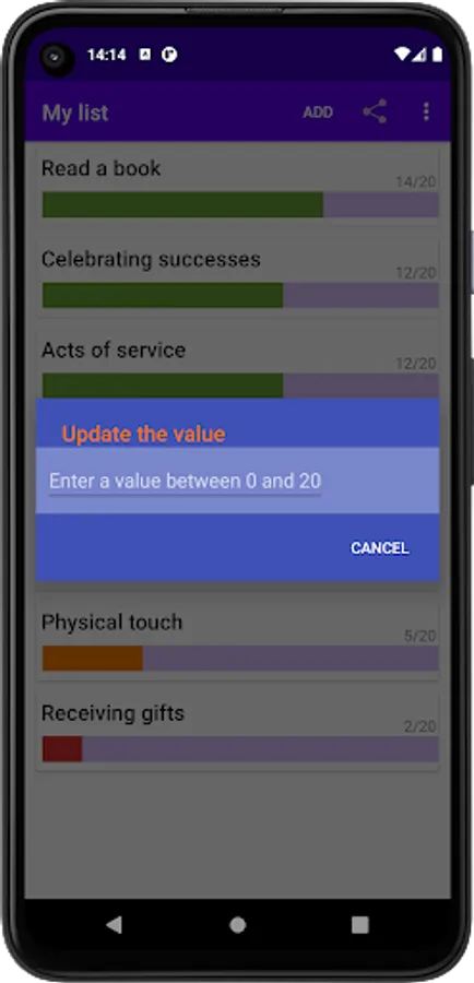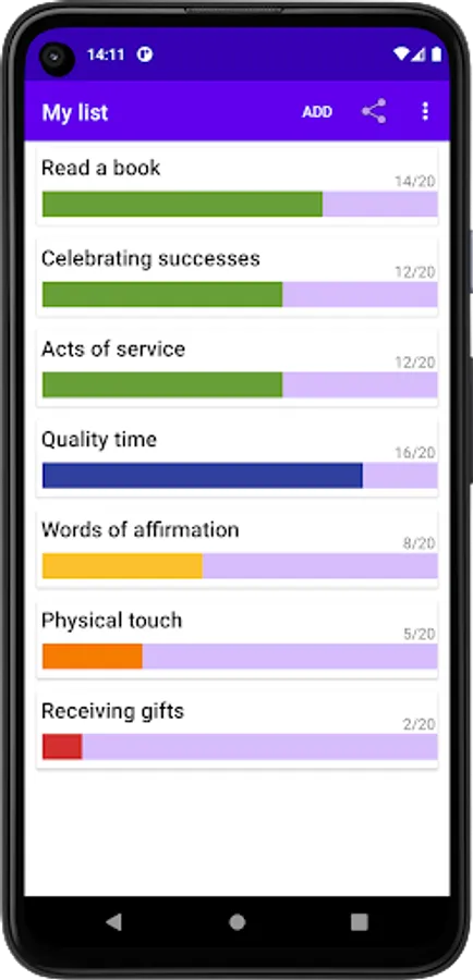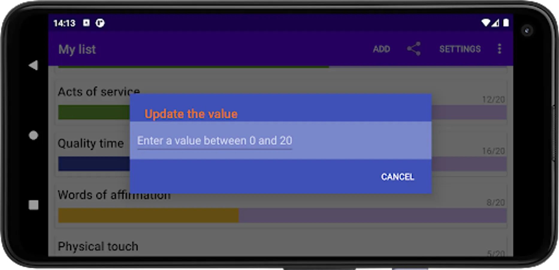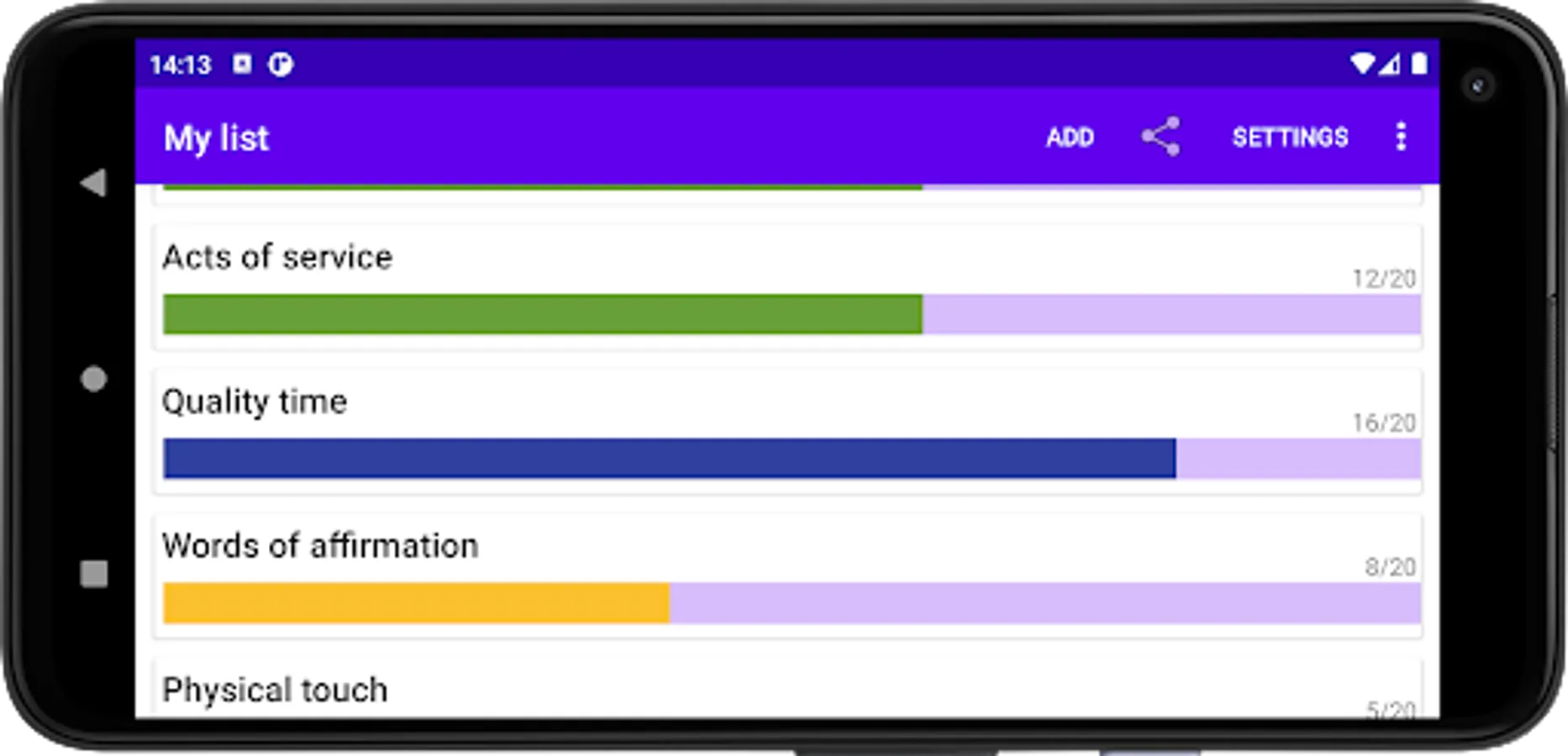 Customize what needs and wants you find important. Set how important they are and how much you need those fulfilled.