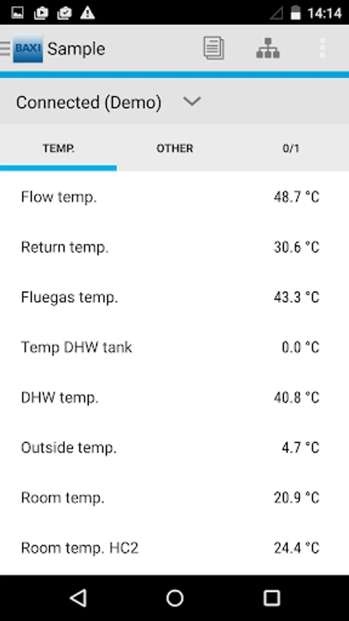 Once the Smart Service App has started up, it will automatically identify the type of unit it is connected to and provide an immediate overview of the unit and all the relevant information.