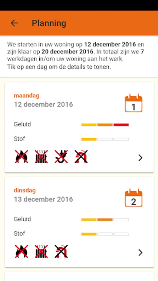 Get rid of the paper booklet that you can lose. Now you have all the information about your renovation or major maintenance trusted on your phone or tablet. For example, browse through the block calendar to see what is going to happen, what you can do to make it easier for the people of the construction or what nuisance you can expect.