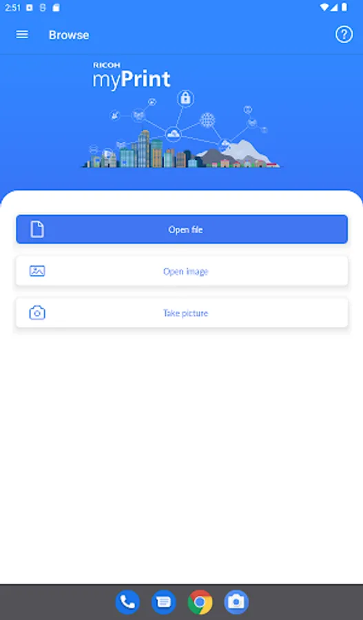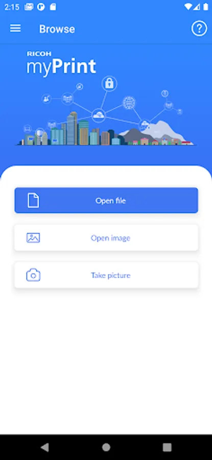 • Browse, share or export files and documents from native apps to Ricoh myPrint