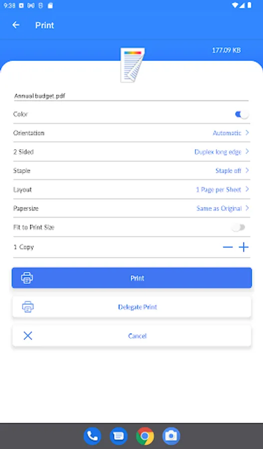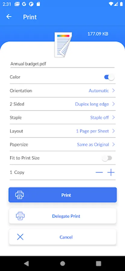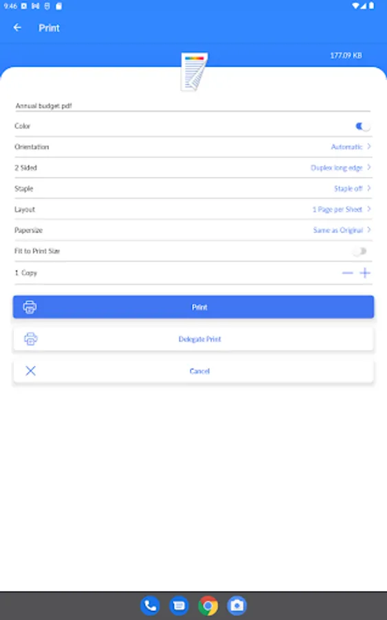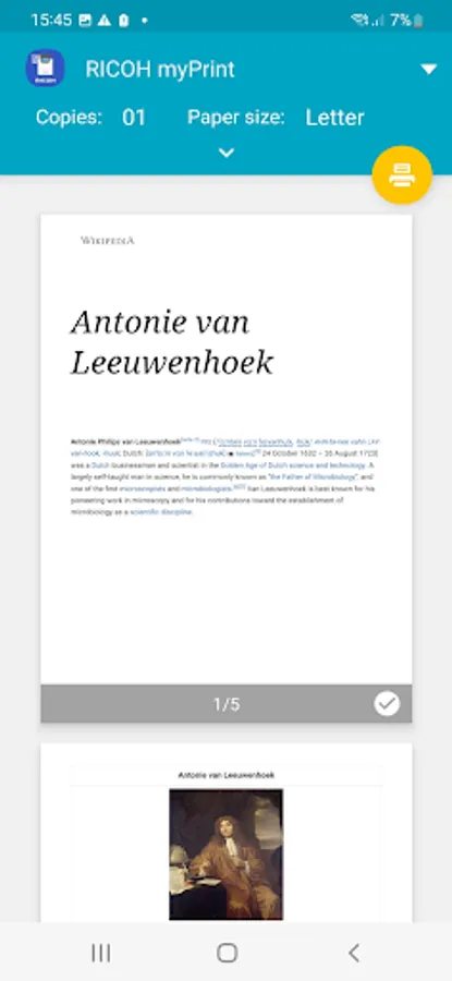 3. Browse to your document or image file and print or use the Share feature of the application to open the Ricoh myPrint app to print