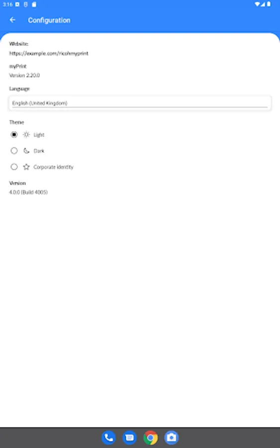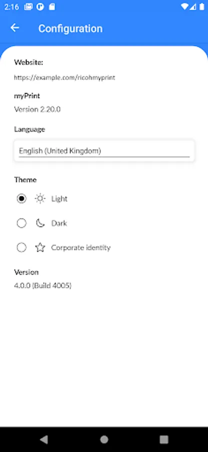 IMPORTANT NOTE: Using this Ricoh myPrint app requires access to a Ricoh myPrint, version 2.13 (or higher) environment. Ricoh myPrint must be installed and configured in the network. To use all new functionalities, at least Ricoh myPrint version 2.20 must be installed. For system information, please contact your local application administrator.