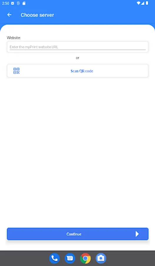 1. Download the free Ricoh myPrint app, enter the URL or scan the QR-code of your Ricoh myPrint server location