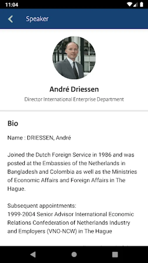 This application provides you with a useful and interactive portal to all the information you need for events and conferences organized by the Ministry of Foreign Affairs of the Netherlands.