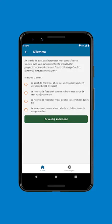 In addition, you will see a dilemma in the app every week. You can vote for it, compare your answer with other officials and find more information about the dilemma and the subject.