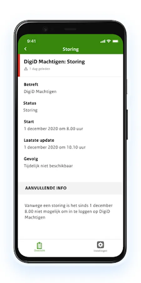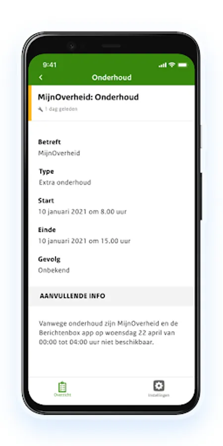You will receive messages via this app if there is maintenance or a malfunction with Logius services. You can choose which services you receive messages about. If you wish, you will receive a notification in the app for new messages. You can also set the messages to be forwarded to your email address. Maintenance and resolved malfunctions are temporarily stored in the archive.