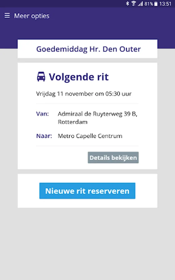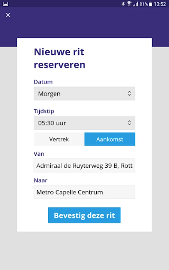 PW Transportation is a collective transport system for staff in and around Rotterdam, traveling outside the timetables of public transport. This service is offered and performed by the Rotterdam Mobility Centre (RMC). To make use of PW Transportation and this app, your employer must be affiliated with the RMC.