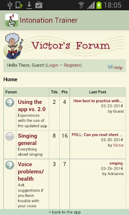 With the app as a reliable guide, you practice in private, without anybody hearing you. With a little help of Victor Baumwolle you won't sing out of tune anymore.