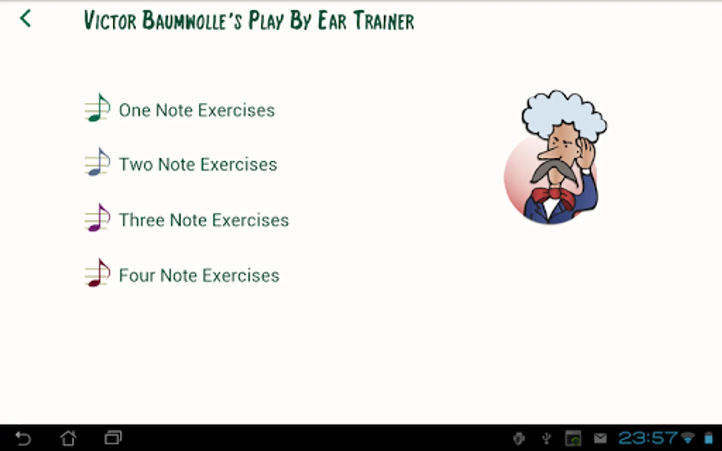 Do you play guitar, saxophone, violin, piano, trumpet or any other instrument? Do you want to develop your ability to play what you hear in your mind right away? Then Victor Baumwolle's Play By Ear Trainer is meant for you! Practice solfege on your own instrument. Play melodies after only listening, without any sheet music.