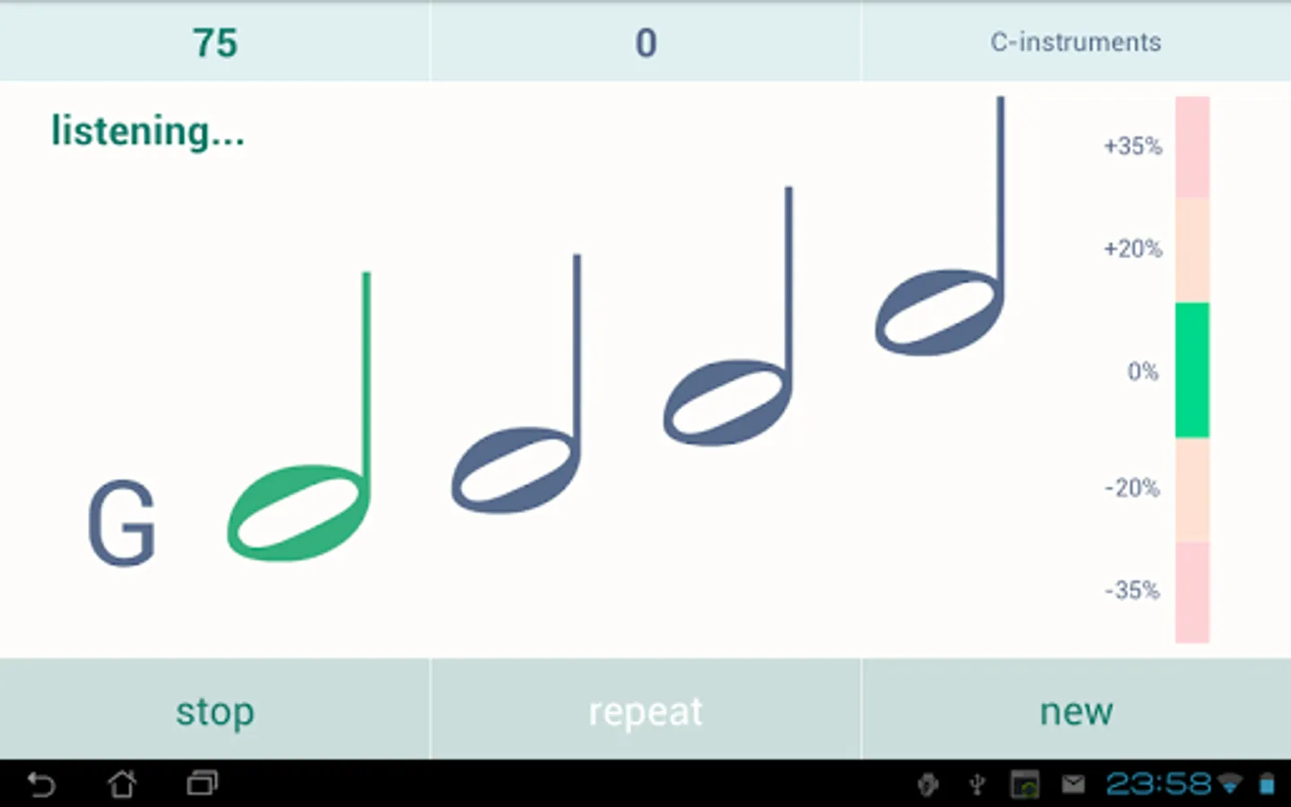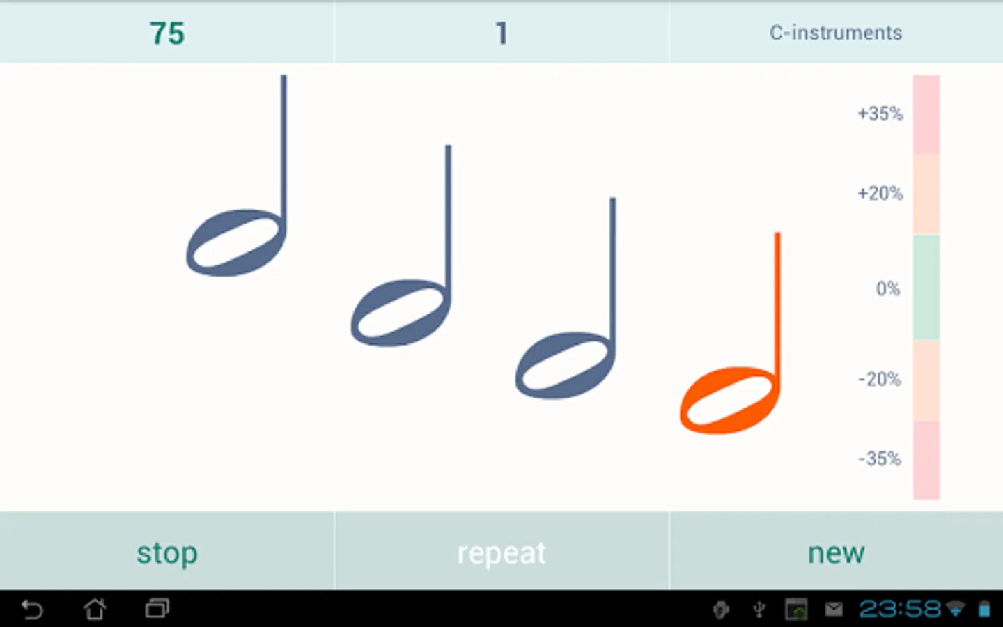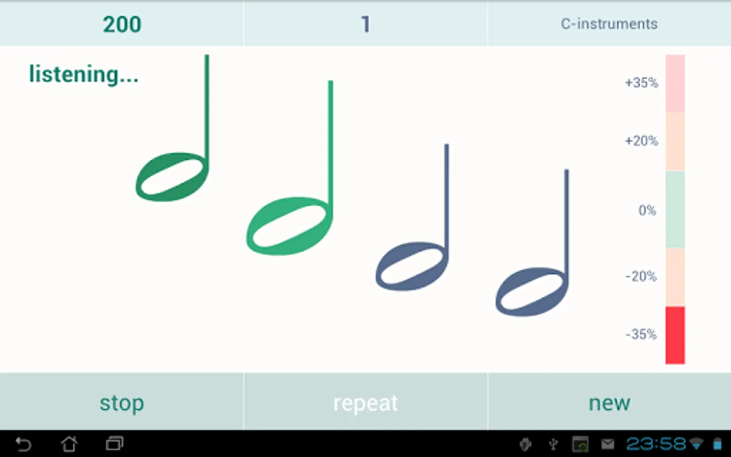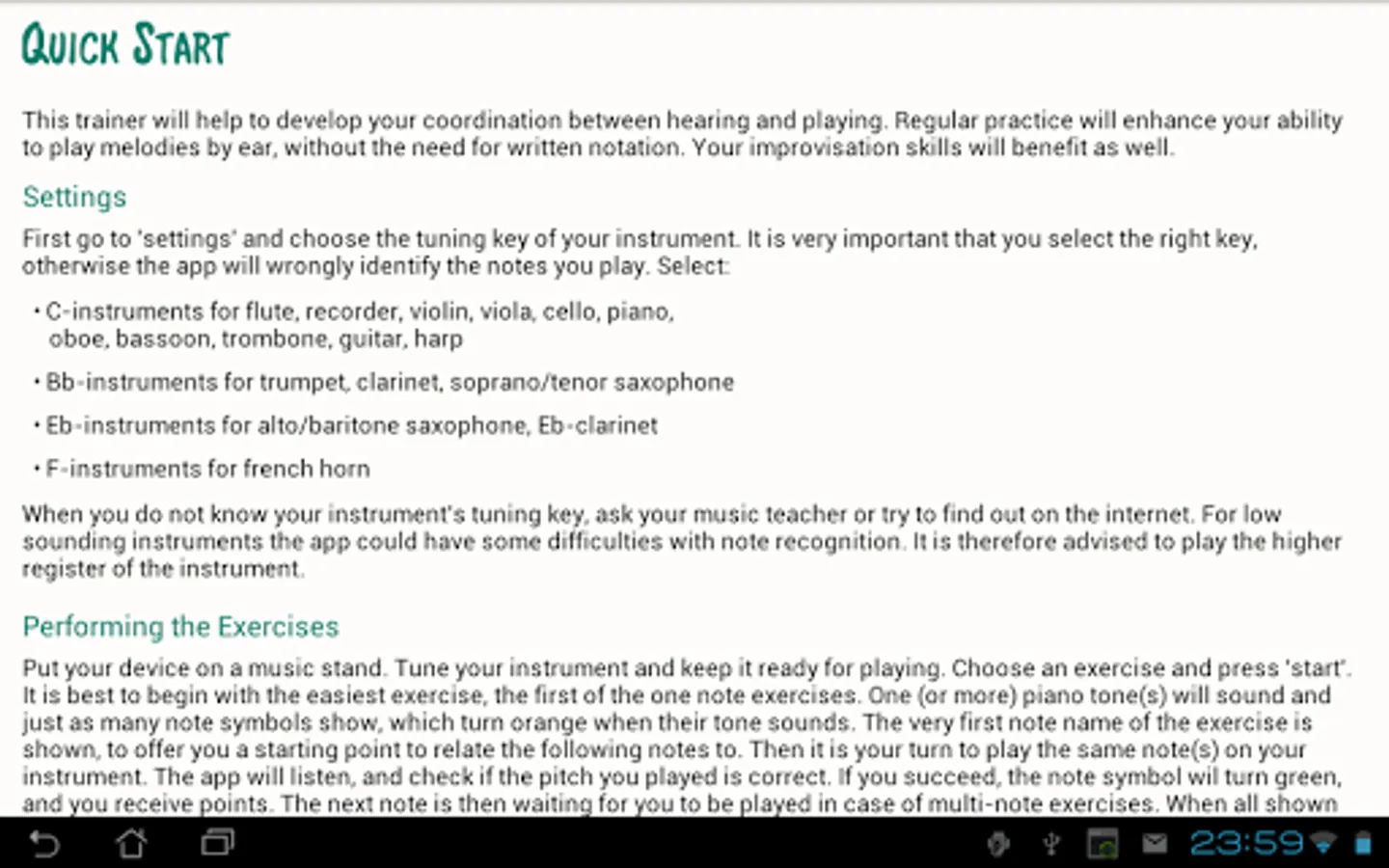This is the ultimate solfege trainer for saxophone, flute, violin, guitar or piano players, or whatever other instrument you play. The app plays assignments that you repeat on your own instrument, and listens if you play the correct notes. The level of the exercises varies from very easy to extremely hard. Never was solfege training so much fun as with Victor Baumwolle's Play By Ear Trainer.
