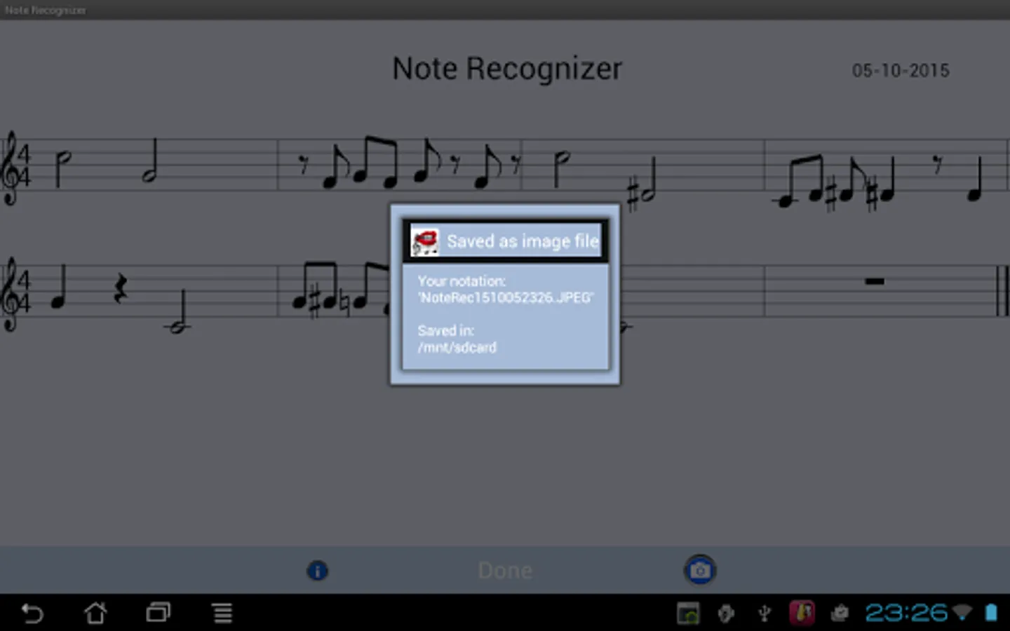 To be able to save the notation, you need at least Android 4.0 on your device. Older versions will give an error.