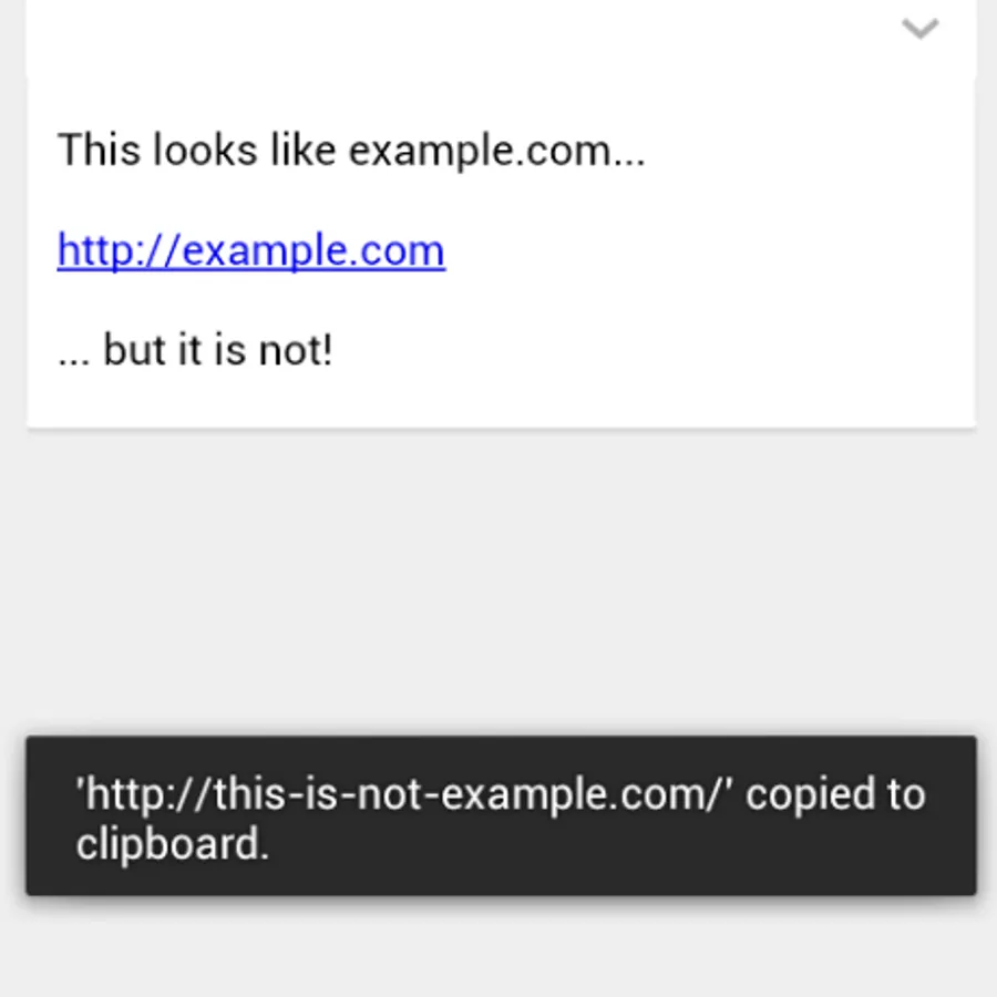 1. When I read a mail in the Gmail app, I want to know whether the link is real. It is very easy to show "http://example.com" while pointing a mail to "http://evil.com".