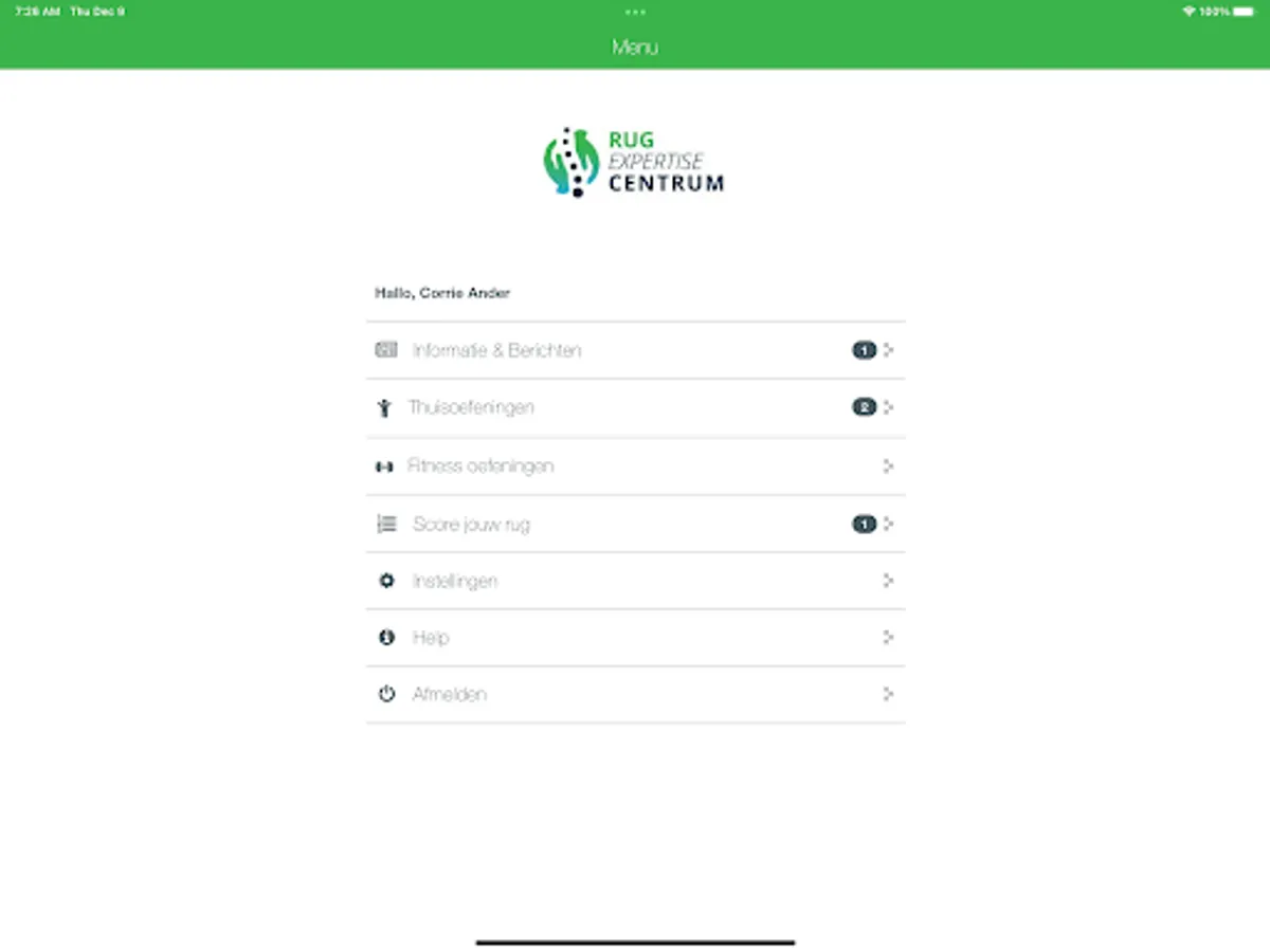 The unique approach of the Rug Expertise Center. With this app you can perform the exercises of your back specialist at home.