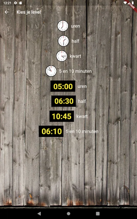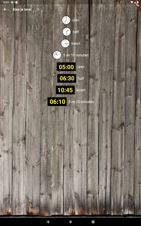 Learn to tell the time quickly and well using 4 levels from hours to 5 and 10 minutes.