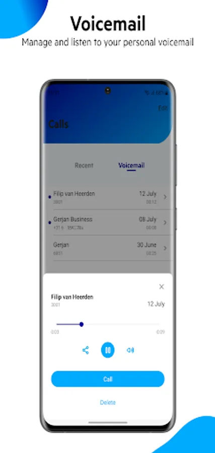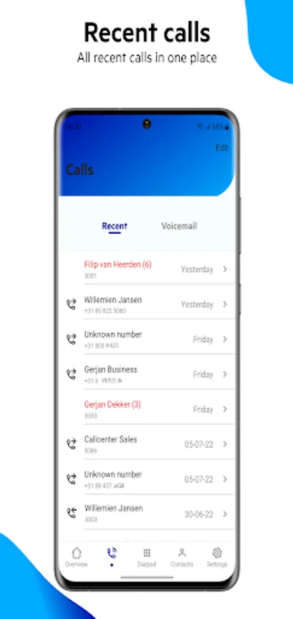 The app provides insight into your calls and voicemail. Missed calls can be returned directly from the app.