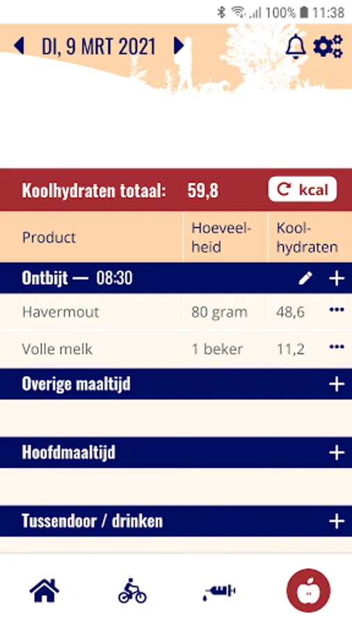 By filling in nutrition you get insights into your daily calories and carbohydrates intake. You can enter activities manually, but for extra insights into daily movement you can also link the Diameter with a Fitbit activity tracker. This gives you an overview of the movement during the day. In addition, you can manually enter your measured glucose values and use the Diameter as a diary.