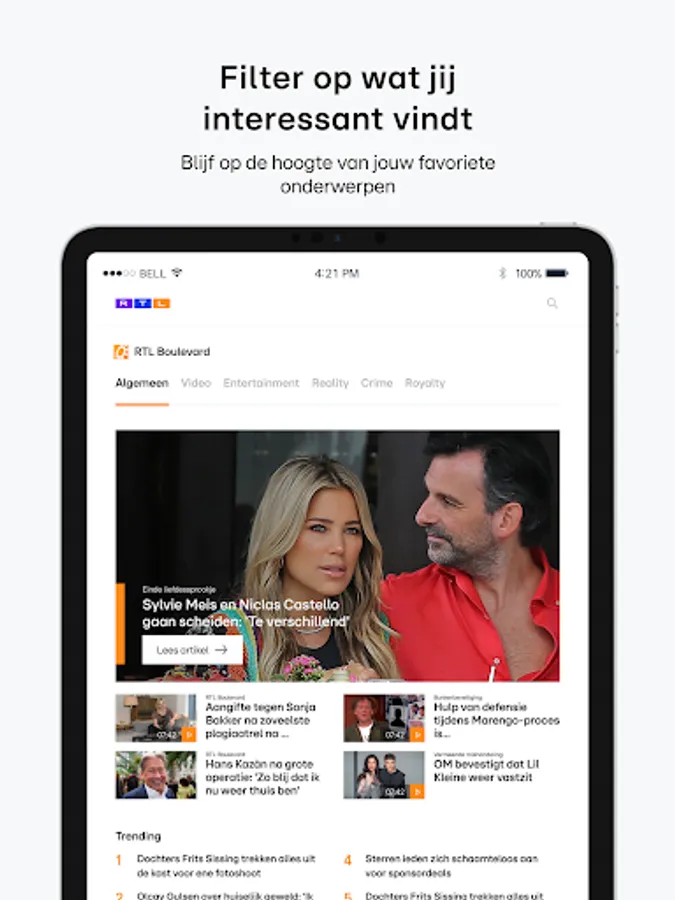 Stay informed of the latest entertainment news from RTL Boulevard and follow the highlights of RTL News closely. Check the app for the most important clips if you missed your favorite TV show, or view unique images, background stories and memories. Are you curious about Expedition Robinson's dropout, or do you want to see that striking moment at the table at Jinek right away? Cook Hugo Kennis' recipes yourself and be inspired by the best living tips from Eigen Huis & Tuin: Lekker Leven. You can log in, vote and find more information about the most popular TV shows. Download the RTL app and always stay up to date.