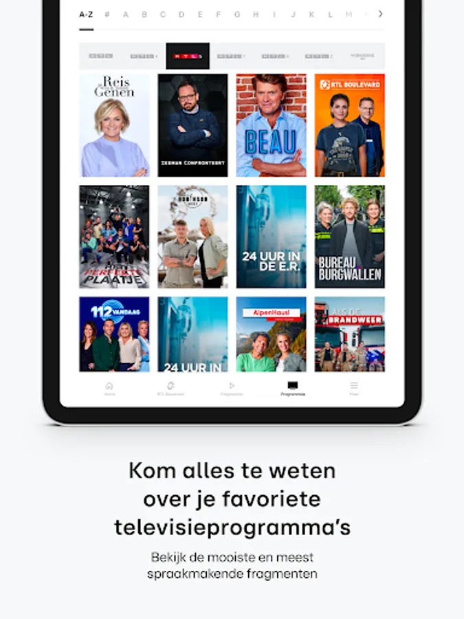 New! The RTL app. The place to experience entertainment and be inspired. Find out everything about our programs and snack on the nicest, most beautiful and most talked-about fragments. Follow the latest entertainment and lifestyle news. Discover everything in the field of living, sports and more.