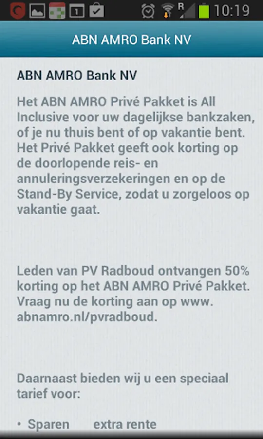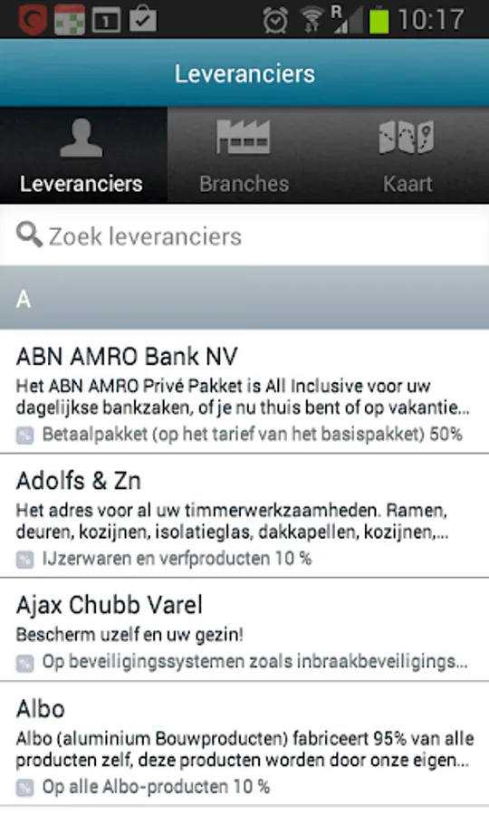Quickly search for suppliers that offer discounts to members of PV Radboud. You can look for suppliers in alphabetical order, or in categories. You have the option to directly email or phone a supplier form Discount PV Radboud. The application is available in Dutch and English; it adapts automatically to the language setting of your mobile device.