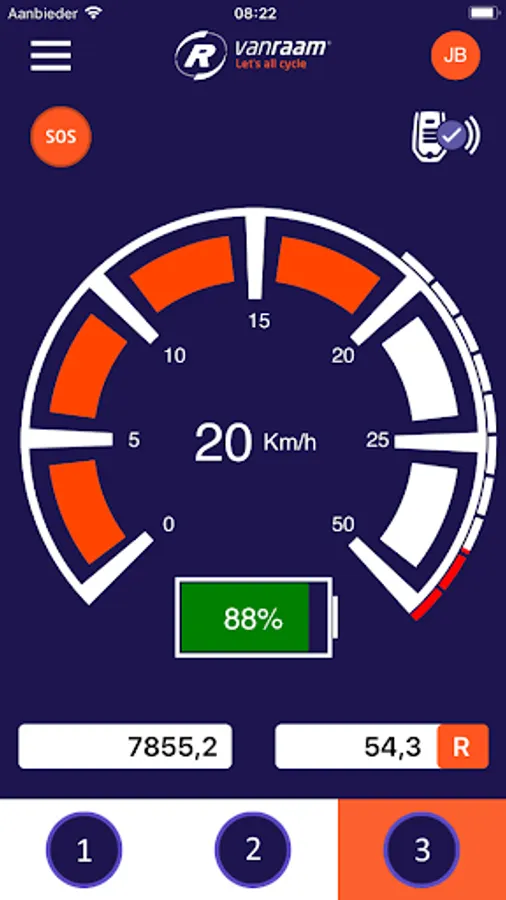 The Van Raam E-Bike app also includes a function that allows you to change the support of the electric motor while driving to the 1st, 2nd or 3rd stage.